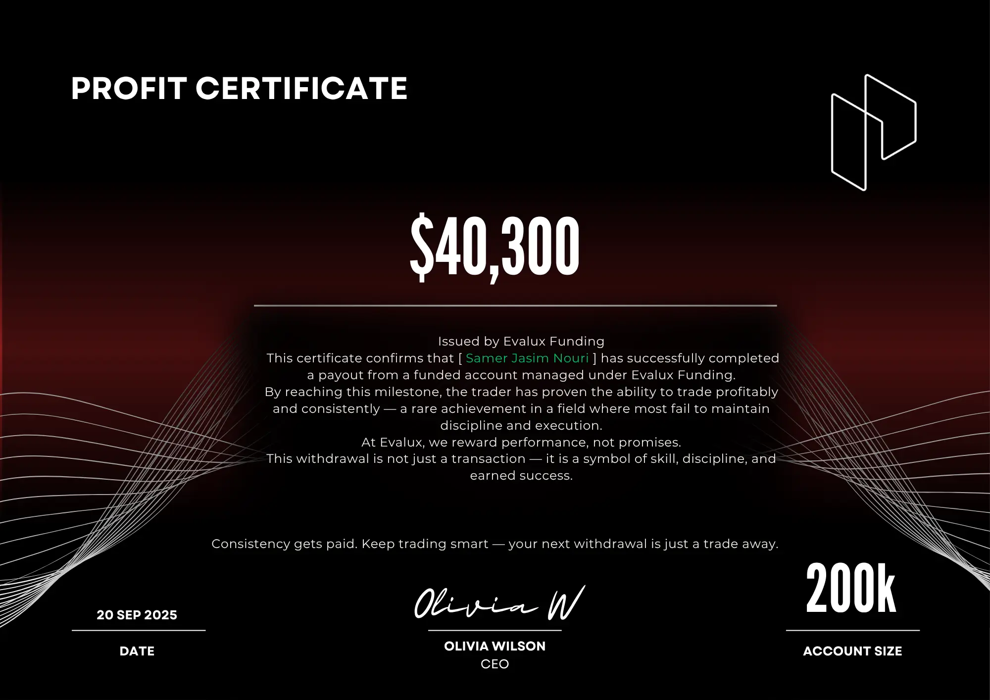 I love how Evalux doesn’t limit my strategies. The ability to trade during news events gives me more freedom and confidence in my approach.
